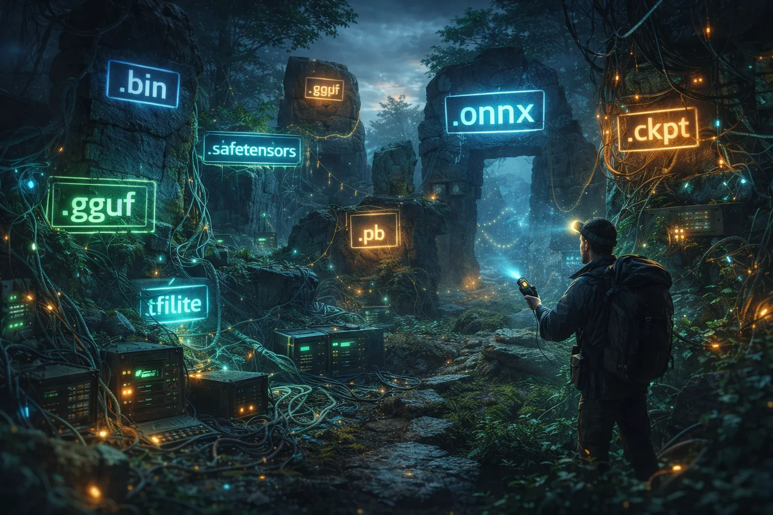 As developers, we can immediately recognize the structure of a .csv file and how it differs from a .md one. Want to experience the frustration of someone completely lost when faced with those extensions? Then take a trip through the .bin, .pb, .h5, .nemo, .dduf, .pt, .pth, .ckpt, .safetensors, .onnx, .gguf, ... jungle of model formats.